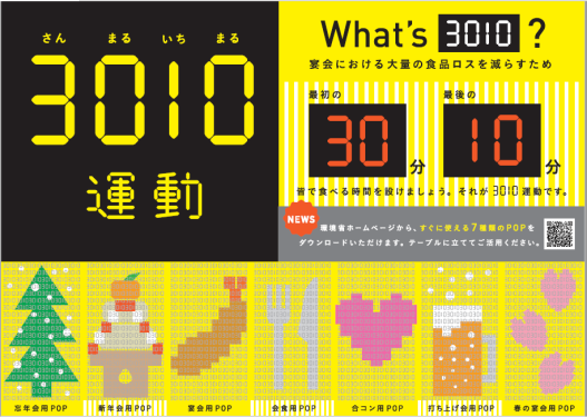 市では、飲食店などでの食べ残しを減らす取り組みの一つである、「30・10運動」を推進しています。
