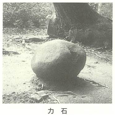 田嶋神社の第一の鳥居のすぐ左横に重さ一〇〇kgを越える丸い力石があります。明治・ 大正・昭和を通じてこの力石をあげた者は田中元四郎翁一人というのです。元四郎翁には北波多の恵木に伯母がいました。その伯母の葬式に米俵一俵をかついで行ったほどの力持でありました。昭和十六年六月八十四歳で亡くなりました。
