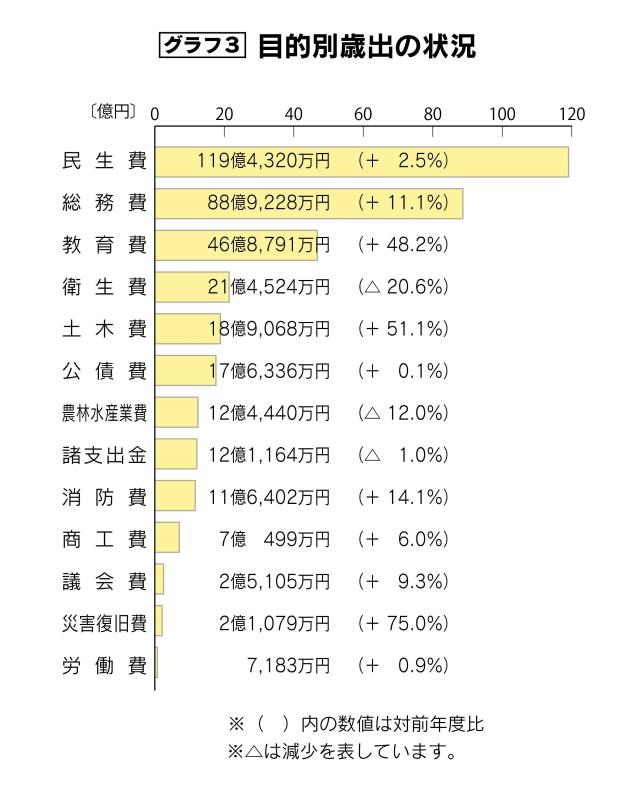 【グラフ3】は、歳出を目的別に分類したものです。