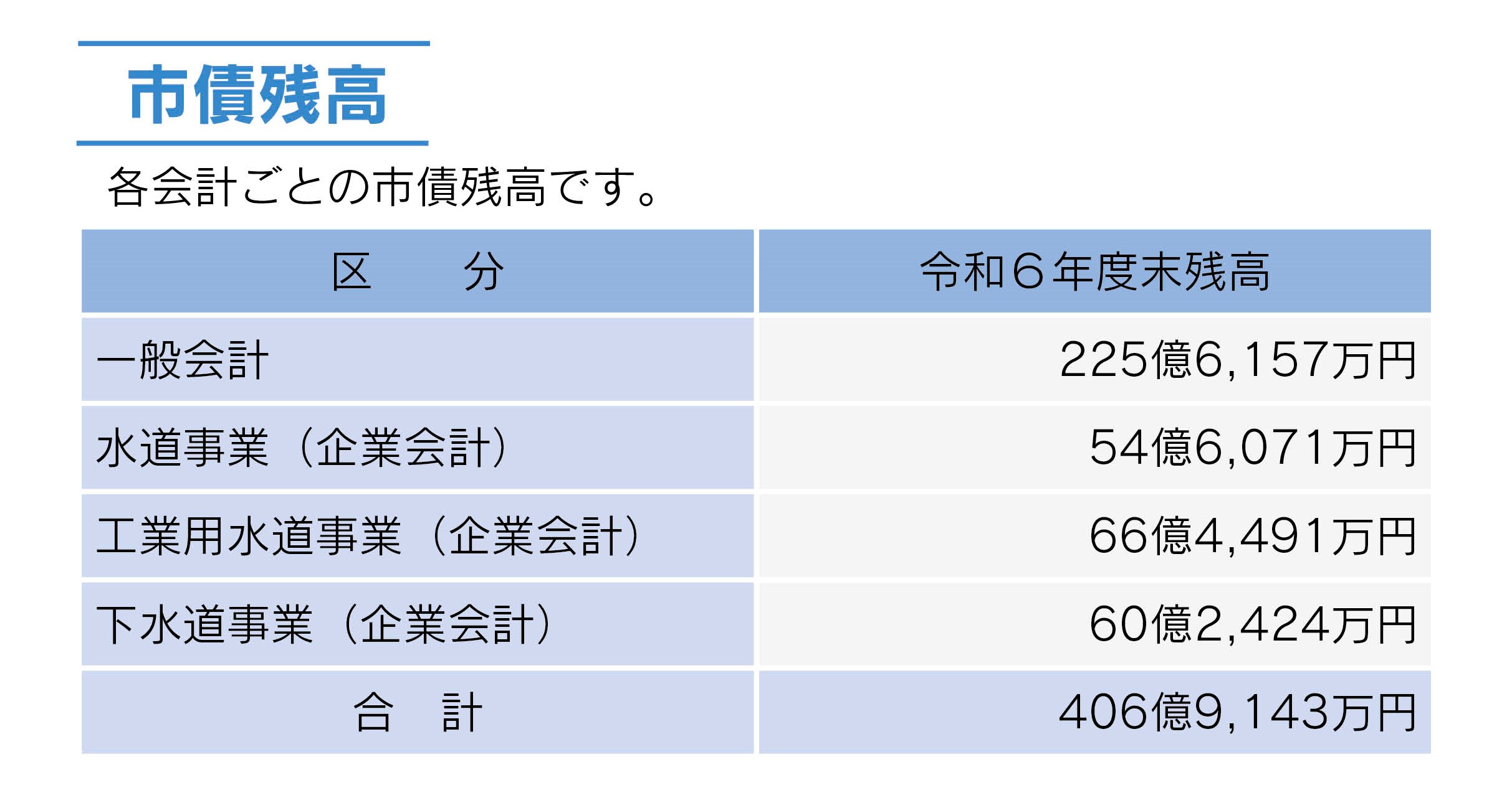 市債の現在高です。学校建設や道路、公園、上下水道など、将来にわたって、多くの皆さんに利用される公共施設整備には、一時的に多額の資金を必要とします。