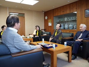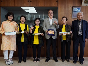 ●令和 7年 9月17日(水) 交通安全マスコット人形贈呈 伊万里市老人クラブ連合会の皆さんより、市民の無事故の願いを込めた手づくりの交通安全マスコット人形を贈呈していただきました。