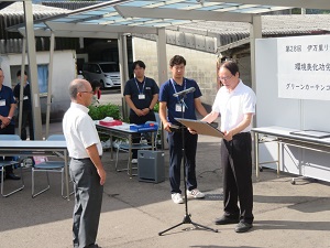 ●令和 7年 9月21日(日) リサイクルフェア 第28回伊万里リサイクルフェアをリサイクルバザー16店の出店を得て市役所で開催し、伊万里市環境保全及び美化に関する功労者3名(団体)と、グリーンカーテンコンテスト受賞者3名(団体)の表彰を行い、お礼の挨拶を申し上げました。
