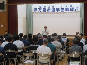 ●令和 7年10月 2日(木) 県民スポーツ大会市選手団結団式 第77回県民スポーツ大会伊万里市選手団結団式が立花コミュニティセンターで開催されたので出席し、激励の挨拶を申し上げました。