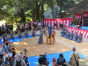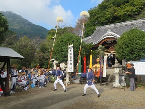 ●令和 7年10月12日(日) 府招浮立 佐賀県重要無形民俗文化財「府招浮立」が南波多町の愛宕権現神社の秋祭りで奉納されたので出席し、お祝いの挨拶を申し上げました。
