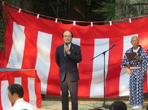 ●令和 7年10月12日(日) 久原秋祭り 山代町久原の飯盛神社の秋祭りで「久原浮立」が奉納されたので出席し、お祝いの挨拶を申し上げました。