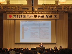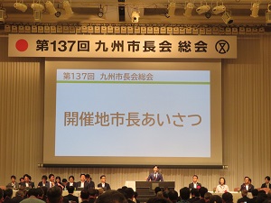 九州・沖縄の119市長で構成する九州市長会の第137回通常総会が、宮崎市のシーガイアコンベンションセンターで開催されたので出席し、各県市長会から提出された13議案を審議、可決しました。