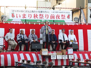 伊万里の町の賑わい創りを目的として関係団体等で組織された「いまり秋祭り前夜祭実行委員会」の主催により、「いまり秋祭り 前夜祭」が市街地で初開催されたので出席し、お祝いの挨拶を申し上げました。