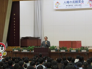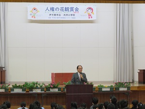 ●令和 7年11月19日(水) 「人権の花」鑑賞会 花を植え、育てることによって協力する心、思いやりや感謝の心を育てようと「人権の花」運動鑑賞会が大坪小学校で開催されたので出席し、法務局や人権擁護委員協議会の皆さんと一緒に花を育ててくれた児童の皆さんにお礼の挨拶を申し上げました。