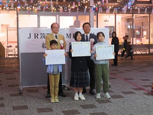 JR筑肥線及びMR松浦鉄道における駅の賑わいづくりや、子ども達のマイレール意識の醸成等を目的として、市内小中学生から募集した「JR筑肥線・MR松浦鉄道絵画コンクール」の表彰式を伊万里駅前公園で開催し、市長賞4点とJR筑肥線賞、MR賞に選ばれた6名を表彰しました。