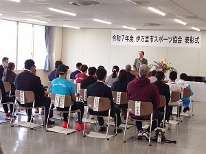 伊万里市スポーツ協会スポーツ功労者表彰・スポーツ賞表彰式が市役所で開催されたので出席し、お祝いの挨拶を申し上げました。