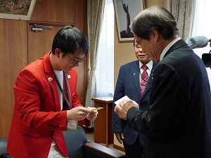 ●令和 7年12月12日(金) シンガポール留学生市長表敬訪問 国際交流の一環として伊万里ライオンズクラブの招きで来日し、市内の民家で約3週間ホームステイされるシンガポールからの留学生 マー ライアンさんが、あいさつのため市長を表敬訪問されました。