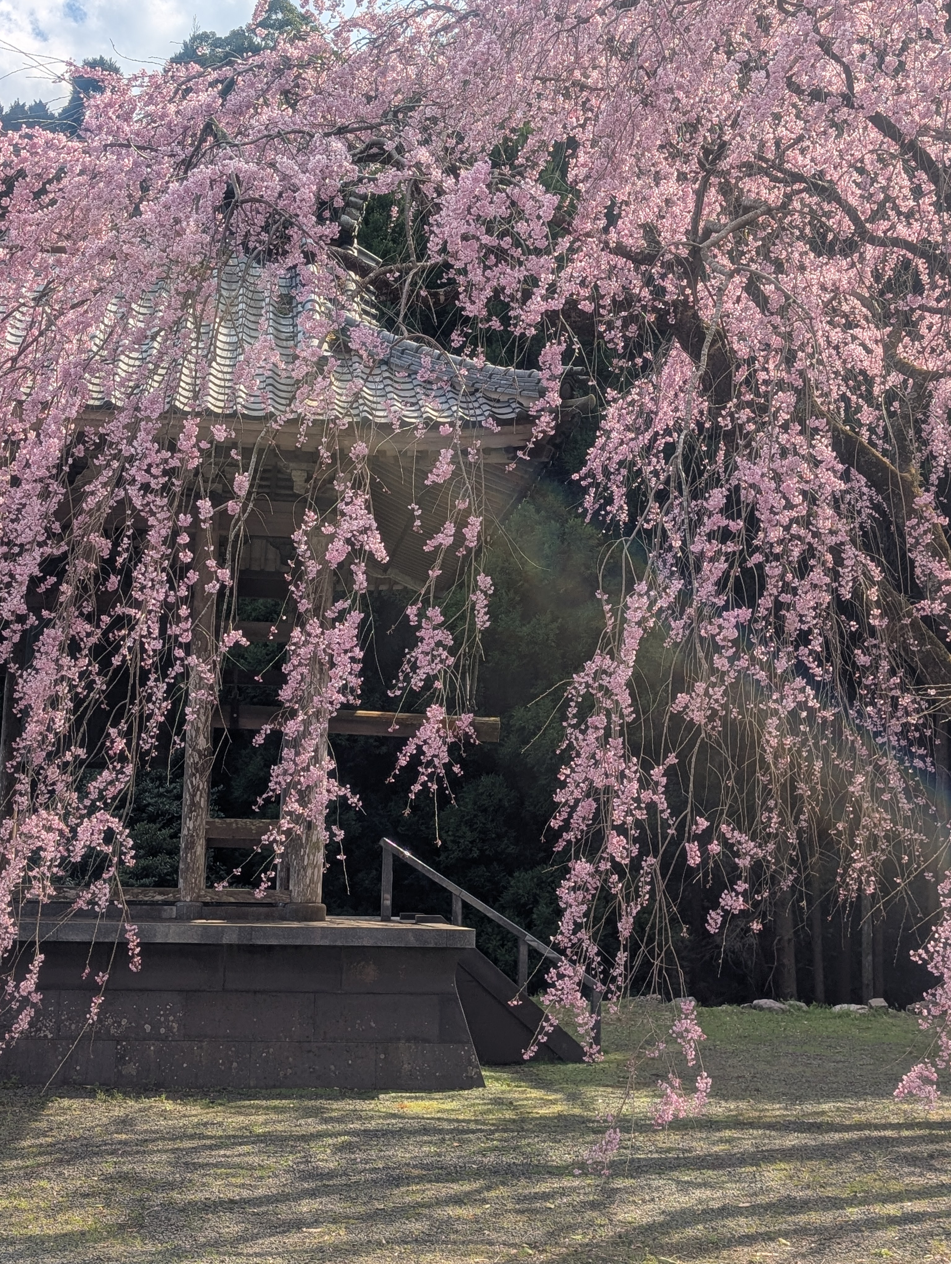 大川内町にある實相院のしだれ桜は、ほぼ満開で枝と花が風に揺れて幻想的でした。