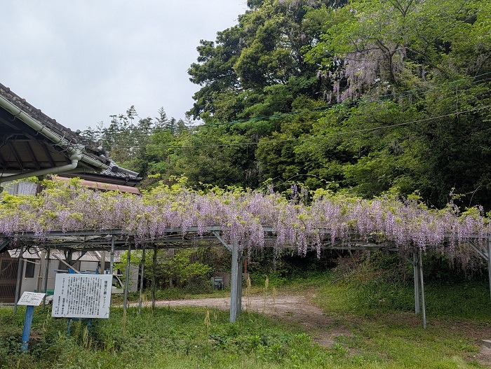 黒川町の竜宮神社もほぼ満開です。風に吹かれて藤の花がゆっくりと揺れていました。