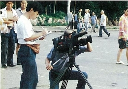 ・大連テレビ局から歌舞団の公演取材団が来伊
