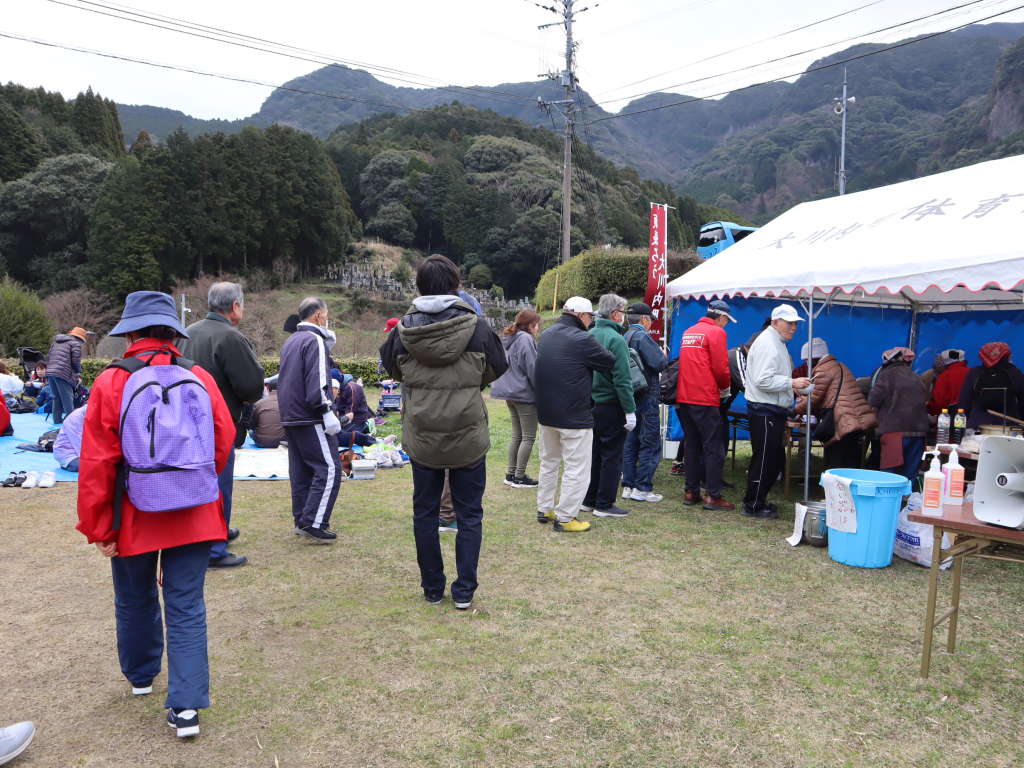 帰路は自由参加です。ゴールでは、おいしいだご汁のサービス・お楽しみ抽選会があります。