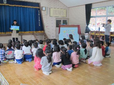 子どもたちは、喜んで紙芝居や絵本を見ていました。