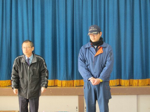 ・伊万里消防署北部支署の消防士さんがお話をしに来てくれました。火遊びをしようとする「悪い心の鬼」を追い出すために、豆まきをしようと話されました。