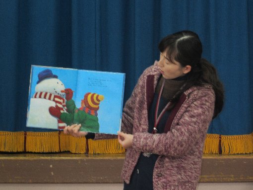 5日(木)ブックン巡回でした。今日は絵本「雪だるまは夜が好き」と紙芝居「おにはしまのとらがり」の話をしてくれました。先日、鬼が幼稚園に来てくれたので親しみを感じ、楽しそうに見ていました。