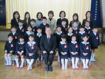 小学校の卒業式です。年長・年中児が見送りをしました。