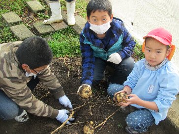 お兄ちゃんに手伝ってもらって、ジャガイモが堀れました。