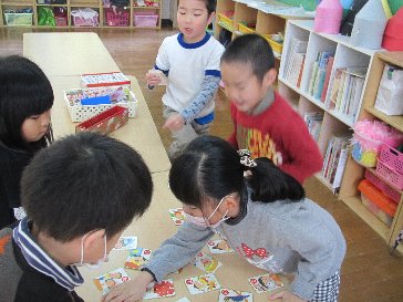 年長組は、カルタ取りが盛んです。読み札も上手に読んで