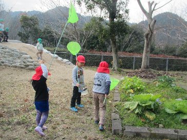 子ども達は、寒い毎日の中でも外で楽しく遊んでいます。
