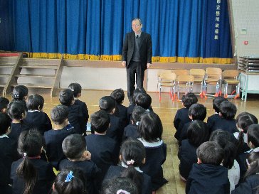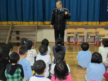 全体の集まりがありました。園長先生から、冬の交通安全について