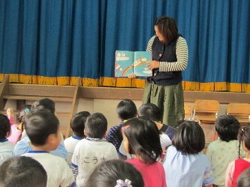 読み聞かせグループ「山んこ」のお母さんに絵本の読み聞かせを