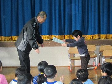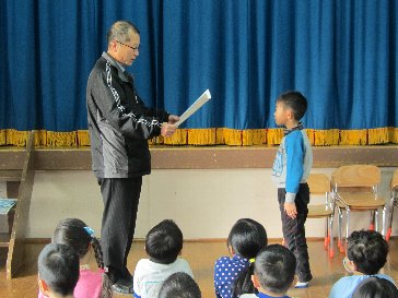 園長先生から、一人一人に賞状を渡してもらいました。
