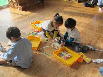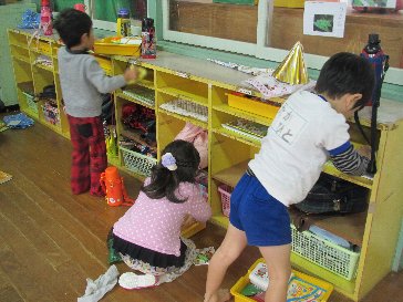 年少さんもお道具入れの整理をしています。