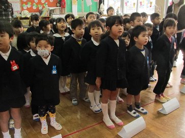 始業式で元気に会いましょう。」と園長先生の話がありました。