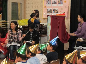 山ん子さんから、『てぶくろ』の劇を見せていただきました。