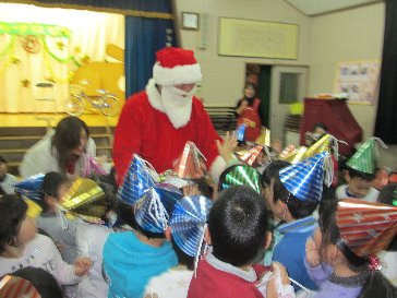 帰り際には、子供たちに囲まれて大人気のサンタさん。