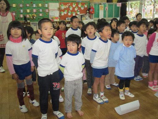 歌の指導が、1回目だったので、歌を知っている子は、口を大きく開けて歌っています。