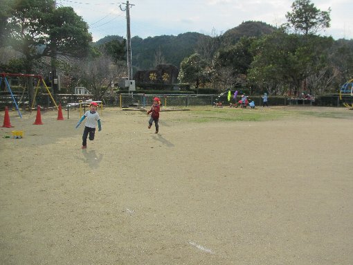 リレーごっこが始まりました。子どもは「風の子」と言われるように、