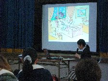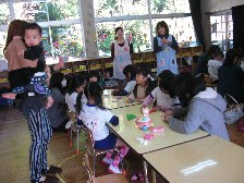 そのあと、池田嘉奈江先生がパワーポイントを使って「早寝、早起き、あさごはん」のテーマで食の大切さを話してくださいまた。最後は、親子給食でした。子供はお弁当、保護者は給食を食べて、楽しい一日でした。