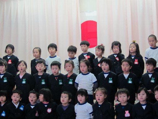 卒園式の練習です。ゆり組さんが「ね」の歌を歌って