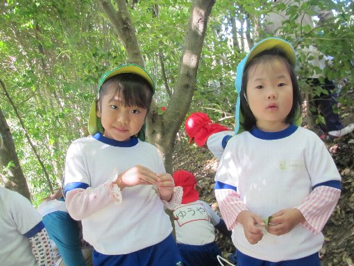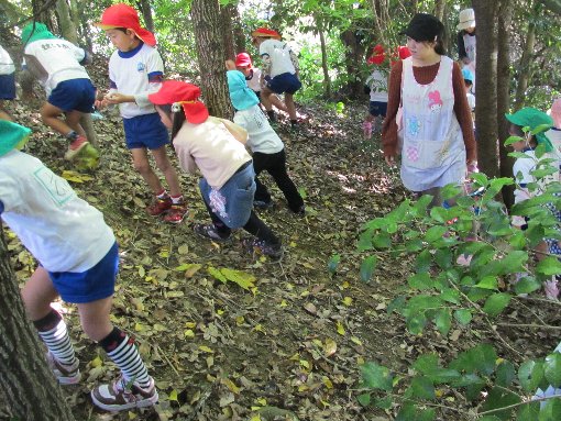 講演会の間、全園児は「敬愛の森」へ散歩に行きました。