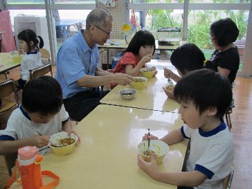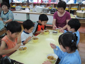 8月5日は登園日で、一年生との交流「カレー会」がありました。