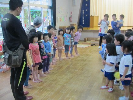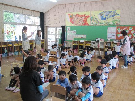 5月19日(月)全体集会がありました。園長先生が「いまりっこしぐさ」の