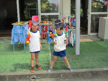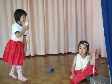 ゆり組さんから1人、さくら組さんから1人決まり鬼ごっこをして遊びました。