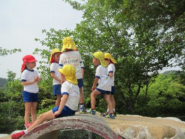 鬼ごっこで「鬼」役決めの話し合いを、トンネル山でしました。