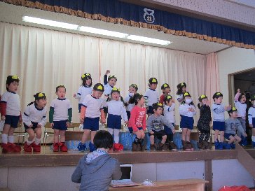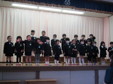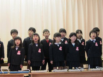 卒園式の練習です。ゆり組さんが「ね」の歌を歌って