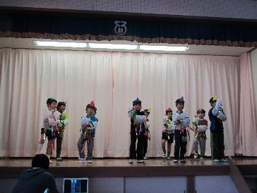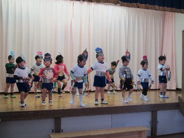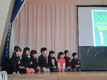 「家読のすすめ発表会」で、年長組が「ももたろう」の