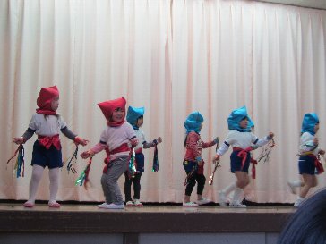 舞台では、「カレンダーマーチ」を歌ったり、「よっちょれ」を踊ったりして、