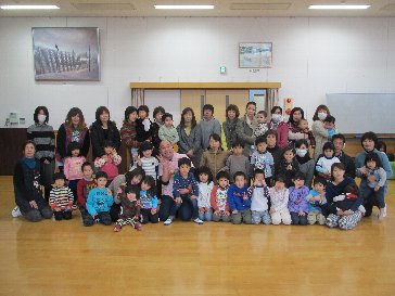 年長児はアルプス一万尺の手遊びをしたり、親子で