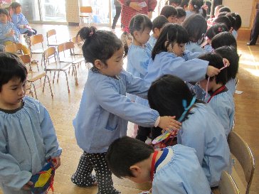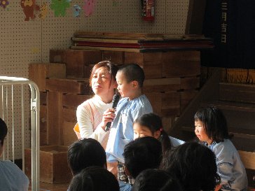 幼稚園で楽しかったことをお話したり、先生たちから子ども達へ
