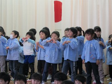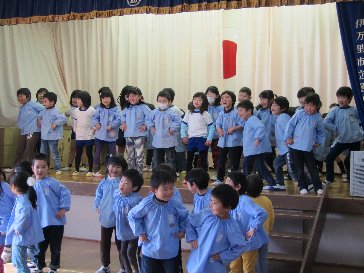 小学校の卒業式です。年長・年中児が見送りをしました。