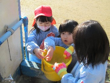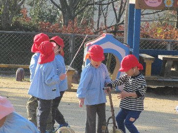 子ども達は、寒い毎日の中でも外で楽しく遊んでいます。
