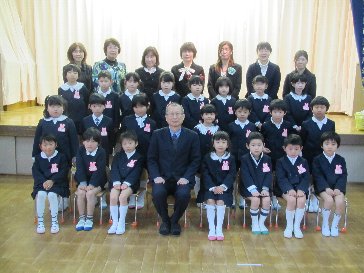 小学校の卒業式です。年長・年中児が見送りをしました。